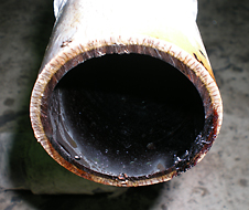 In this example, the chemical fluid permeated the pipe and seeped out onto the external surface.